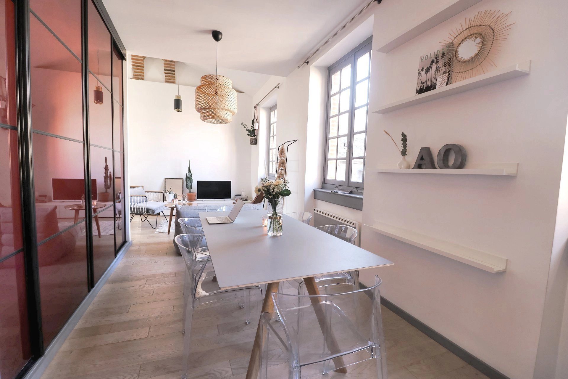 Dans un hôtel particulier classé aux monuments historiques, appartement T2 en duplex, offrant une rénovation soignée et une superbe vue sur le centre historique. Il se compose d’une cuisine ouverte sur un vaste séjour, d’une salle de bains, d’un wc séparé, d’une chambre et d’un coin bureau à l’étage. Belle hauteur sous plafond. Proche parking Carmes, métro Carmes (ligne B) , et des commerces.