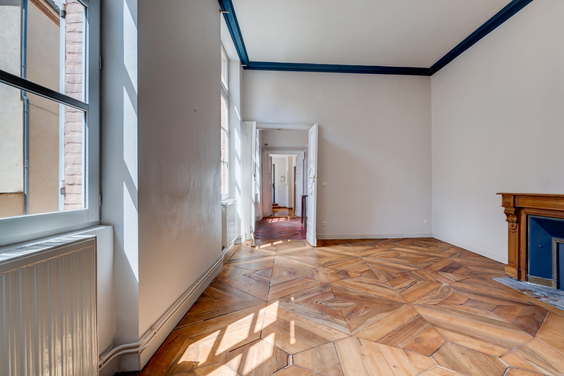 Belle hauteur sous plafond, moulure et parquet Versailles.