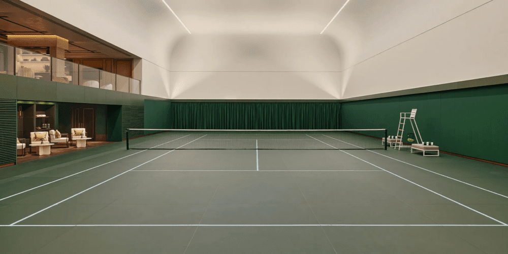 Niché dans la prestigieuse enclave de Belgravia, à Londres, le Garrison Club de Chelsea Barracks offre aux résidents un sanctuaire privé qui élève le concept de sport au rang de forme d’art. Au cœur de ce développement résidentiel de classe mondiale se trouve un court de tennis intérieur qui allie parfaitement charme vintage et sophistication contemporaine, créant une expérience aussi exclusive que luxueuse.