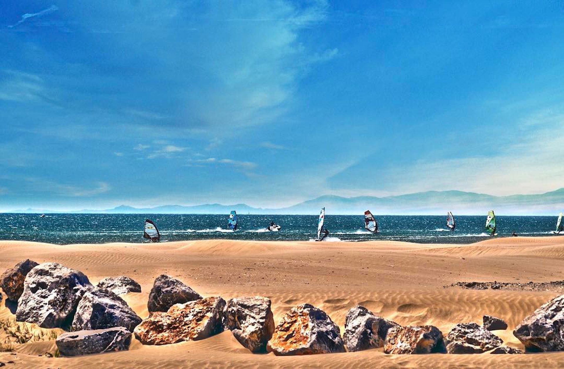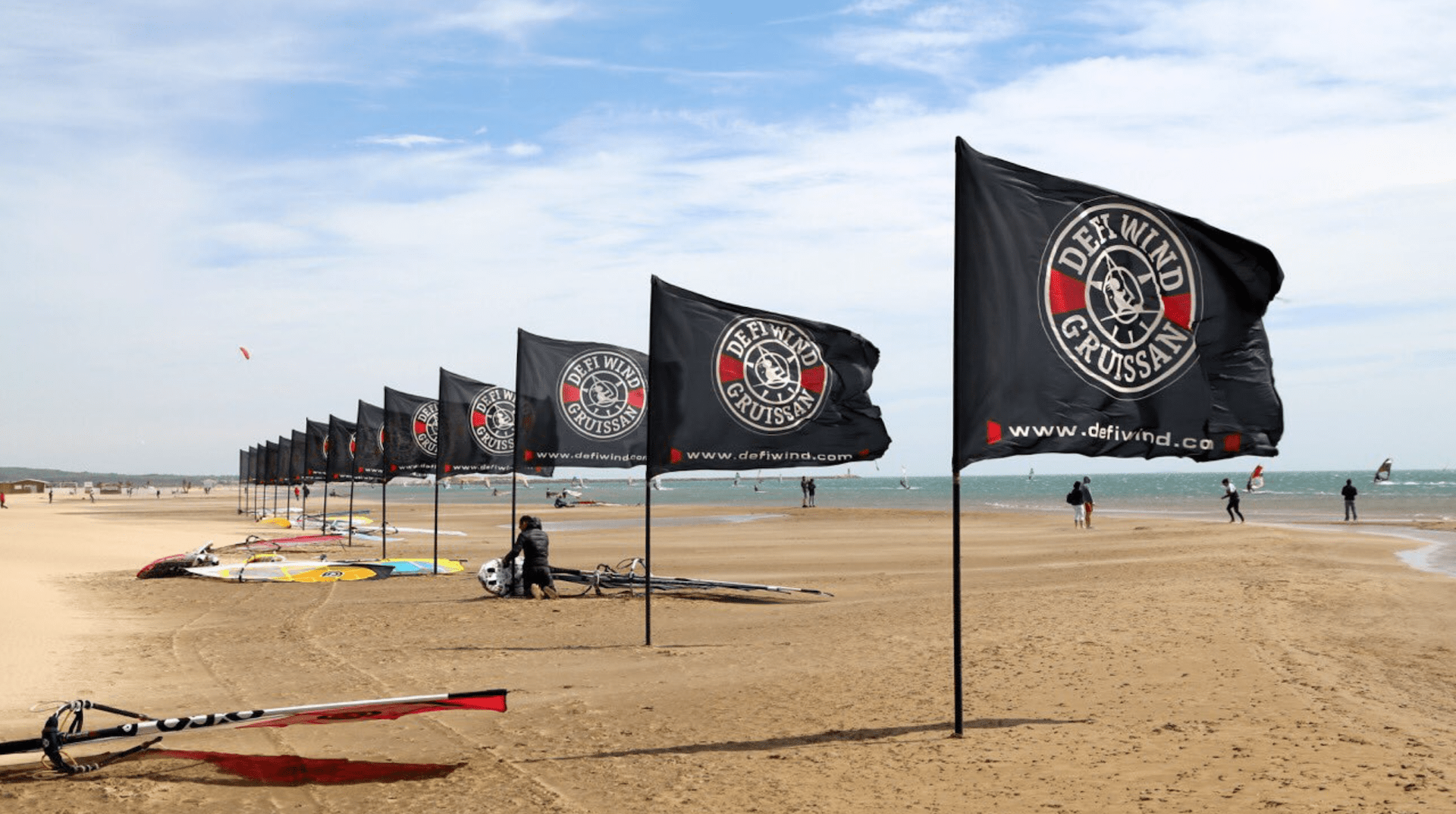 Les windsurfeurs entrent en piste. Ils viennent d’Australie, du Japon, de Polynésie…pour vivre ce moment unique au monde. Réunir pros et amateurs sur une unique ligne de départ autour de la passion du windsurf, voici l’esprit du Défi Wind de Gruissan depuis ses origines.