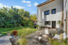 Le rez-de-chaussée s’organise autour d’une pièce à vivre lumineuse, où salon et salle à manger communiquent avec le jardin paysager grâce de larges baies vitrées. La cuisine équipée s’ouvre également sur la terrasse.